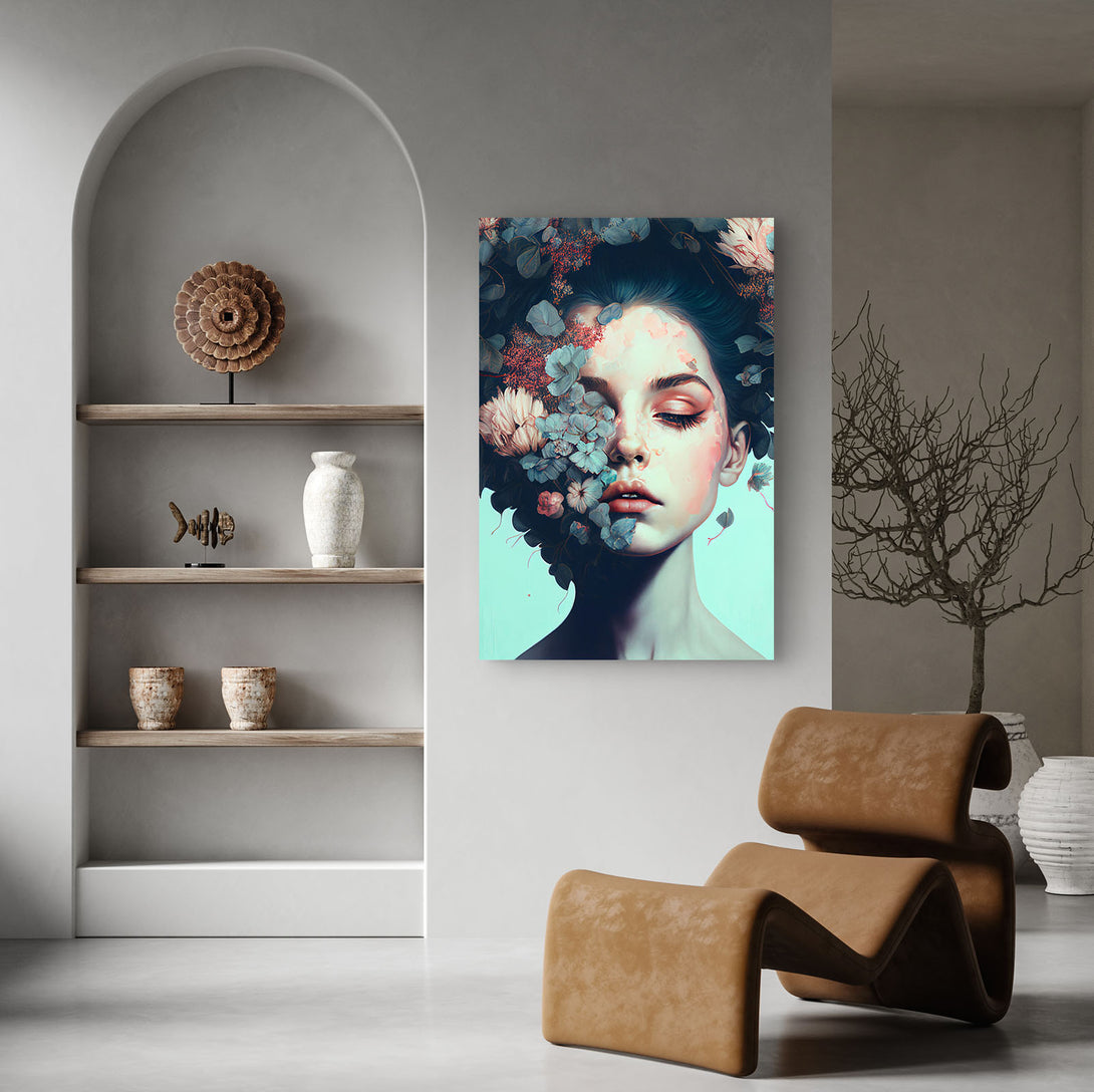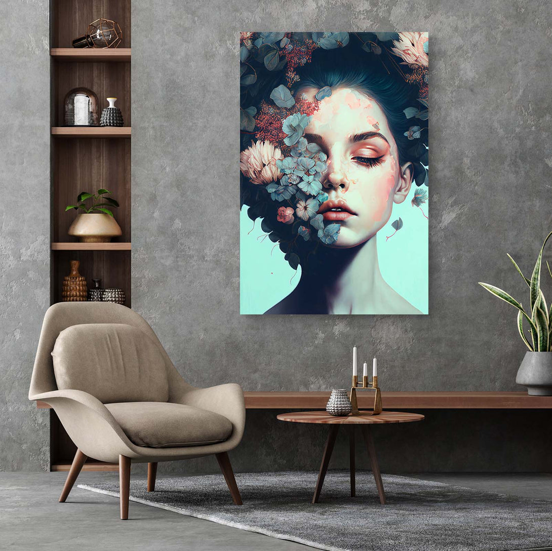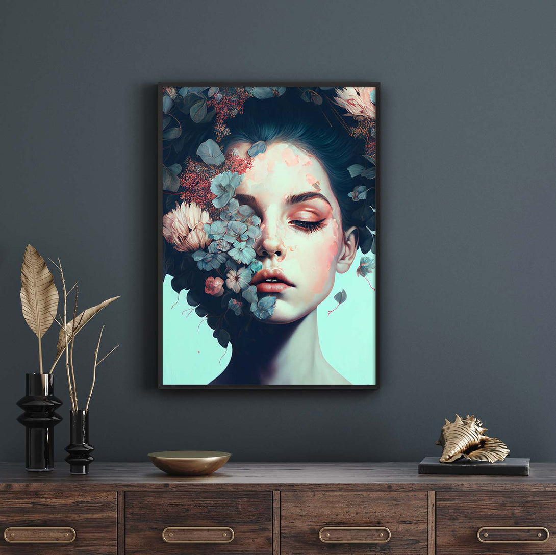 Vrouw met bloemenkunst